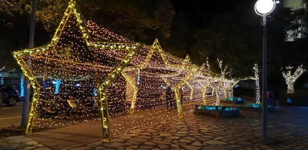 串聯溫泉廣場至迎賓廣場、地景廣場,以及鄉公所至礁溪國中一帶都有超美的燈飾,就連當地最熱門的湯圍溝公園也有整片的七彩燈籠在上面,一旁還有免費可以泡腳,讓這個夜晚超享受又浪漫~