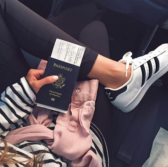 到機場必拍的就是,passport搭配機票,鏡頭朝下拍,把鞋子和下半身的打扮都一起入鏡,才不會顯得太單調喔!