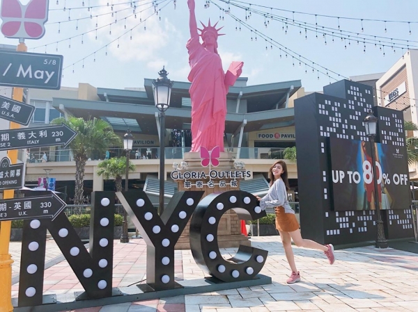 華泰名品城除了適合逛街、吃飯,還很好拍!身為全台第一間美式露天OUTLET,還真的是像國外的MALL那樣設計,走在華泰outlet真的有置身美國outlet的感覺~最特別的是外面有著充滿紐約街頭氣息的一個打卡點,粉紅色的自由女神像超級討喜的阿!約會來這裡,拍照、吃飯、逛街一個點直接搞定!