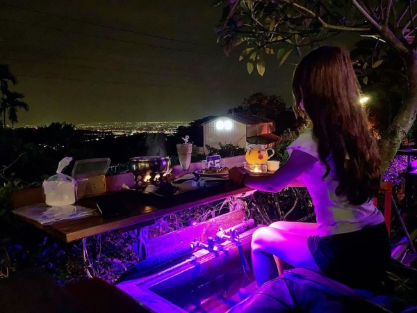 除了可以欣賞八卦山的整片夜景,還可以用養生藥草泡腳,除了享受看夜景的浪漫之外又再多一項不同的體驗及樂趣~