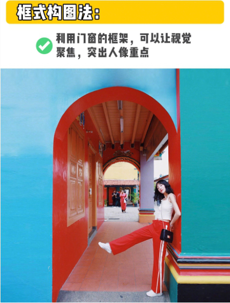 利用生活中的各種「框」進行構圖,比如拱門、窗戶等,當人物出現在框中時,可以起到突出重點,讓視覺聚焦的作用。