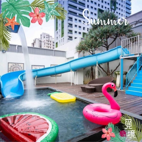 相信大家來台中的必訪景點中一定有逢甲商圈對吧!這間「覓境行旅」就在商圈龐鬧中取靜唷!去年重金打造「露天滑水道泳池」,特地挑選景觀超好的地方建造,傍晚還能夠邊玩水邊看著夕陽西下,晚上還能在泳池旁跟朋友、另外一半一起欣賞夜景,既夢幻又浪漫,還有超優質室內按摩浴缸可以讓大家盡情放鬆,還可以邊泡澡按摩,邊看電視配啤酒,就怕你不夠享受!xDD