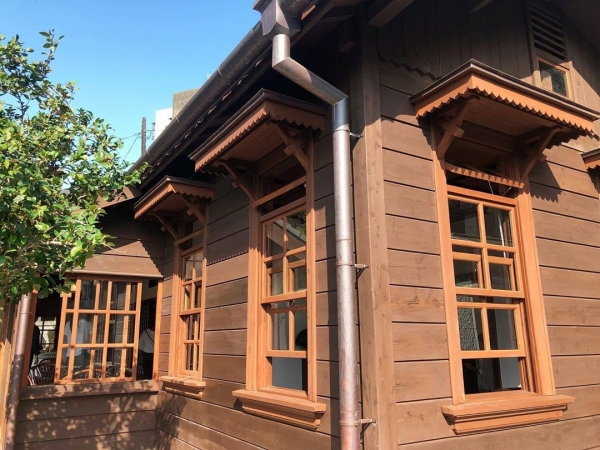 位於中正路的「淡水日本警官宿舍」是一座重要的建築物,也是新北市唯一一間高階警官宿舍。建築有三大特色,其特色之一是有雁尾造形的雁行式氣窗,除了引導雨水流動之外,結合西洋式上下懸窗更是獨特!
