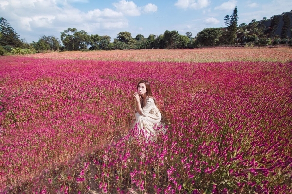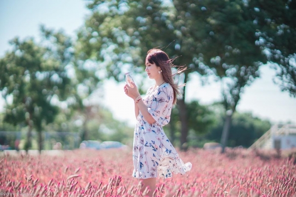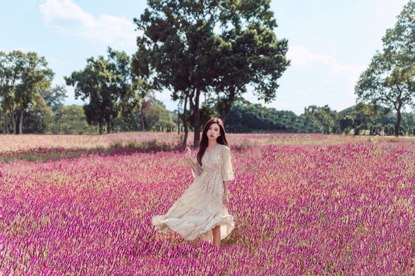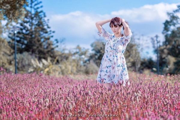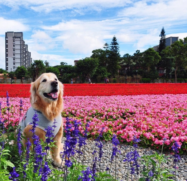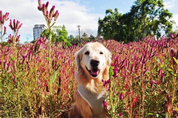 也有許多人會帶著毛孩來拍萌照喔!隱身在花海中也太可愛~
