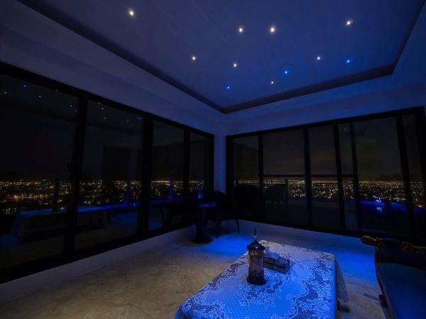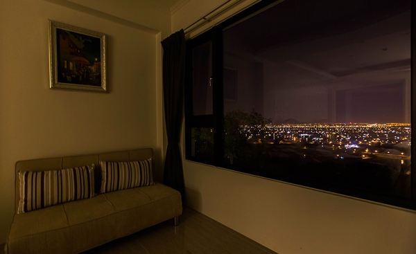 最主打情侶來住這裡,因為夜裡非常浪漫,這間的夜燈是走浪漫且富有情調的燈飾,還有可愛的化妝台,旁邊角度剛好可以直接從床上望近百萬燈火夜景,超級浪漫的啦~
