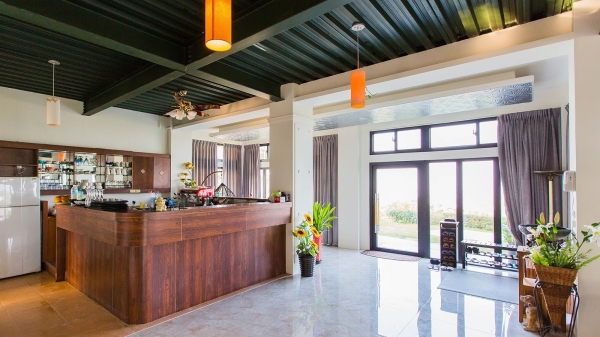 這是民宿裡面附設的餐廳,整個就是跟外面的大自然結合在一起,讓你享用美食也能夠欣賞外頭獨有的景致。