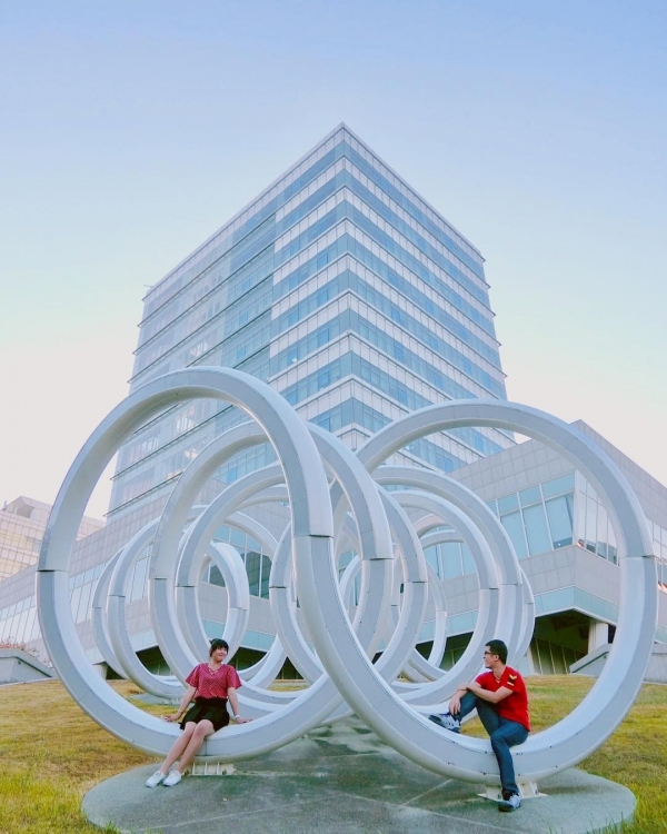中科園區的中科工商服務大樓前有3個裝置公共藝術,這在2014年就曾是網路打卡熱門景點。地點就在中科工商服務大樓前門兩側。