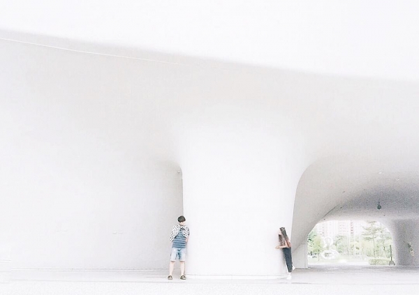 這裡堪稱是全台最特別的建築之一,外觀以流線造型的河流意象,象徵乘載無限知識之流。