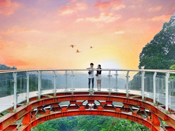空中步道設於瀑布上方約五公尺高的地方,馬蹄型的步道讓旅客在上方鳥瞰瀑布全景,強化玻璃的地板與欄杆相當刺激,讓人360度無死角的享受美景,但透明步道一次僅能15人通行。
