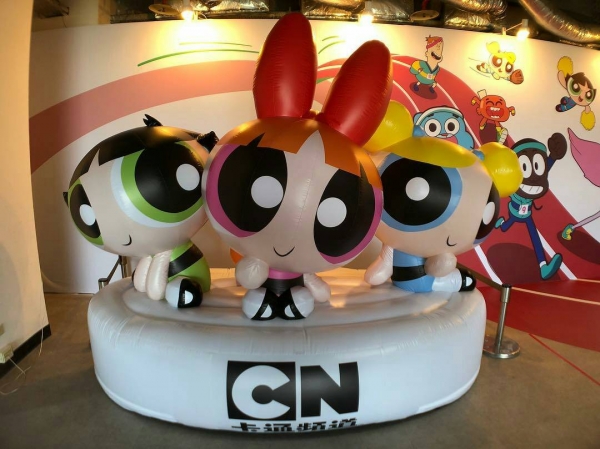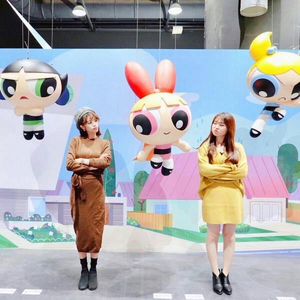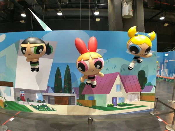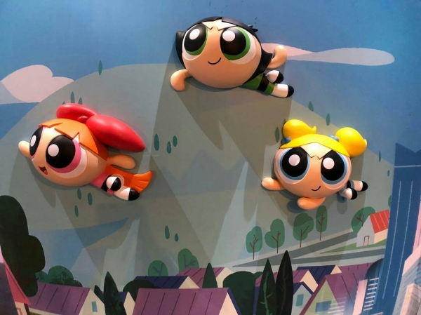 再來就是大家的童年,飛天小女警啦~~在小女經家門口一起合照,或是看著她們前去拯救小鎮,色系好粉嫩,超可愛的~~
