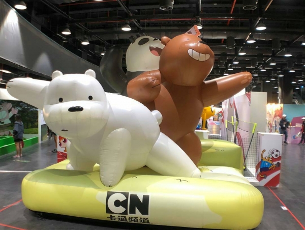 其他闖關項目稍後為大家介紹,先帶大家來看看有甚麼是值得拍的吧!一進來就會先看到巨大的阿寶和老皮的充氣公仔,不遠處還有熊熊遇見你的大型充氣公仔,一旁還有比賽裝扮的大大、阿極與胖達,絕對不能錯過喔!