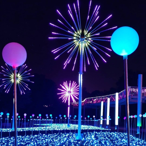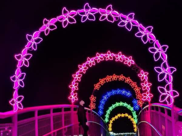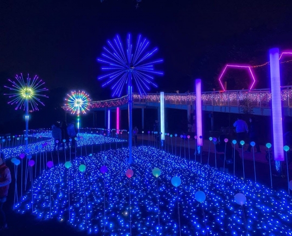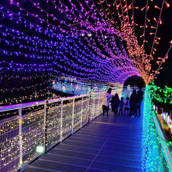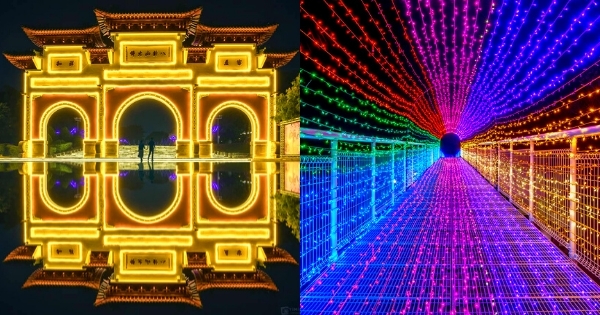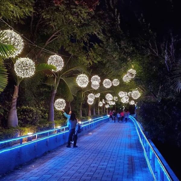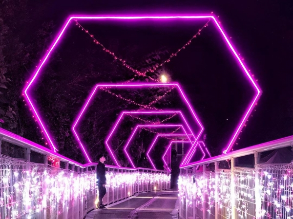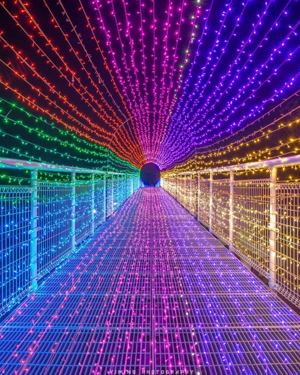 彰化月影燈季來囉!燈區就位於八卦山大佛前廣場至天空步道,全長長達兩公里,裡面充滿了各種特色主題,其LED光廊及燈飾讓整個八卦山亮起來,50萬顆燈打造出迷人絢麗的夜色風光!
