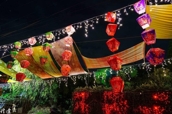在金陵村玉陵宮周邊也有各種裝置藝術可以觀賞唷!除了白天可以賞花海之外,晚上則可以觀賞美麗的燈海,真是太幸福啦!