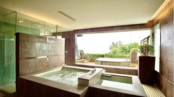 除了戶外的星空湯池,房內也不惶多讓,直接冷熱雙泉兩個溫泉池坐落在房間裡,大片的玻璃可以直接看到戶外,不管是白天看風景、晚上賞夜景,通通都超享受!