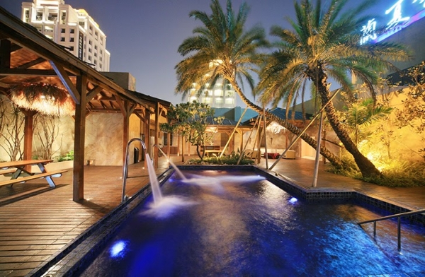 是不是有一種來到國外度假的即視感!超應景的椰子樹、木質造景及超大泳池,讓你不用花大錢就能感受出國的愉悅跟放鬆。