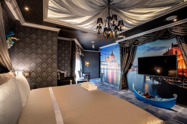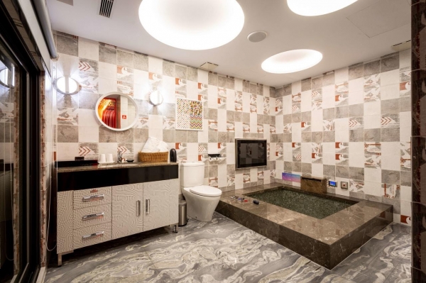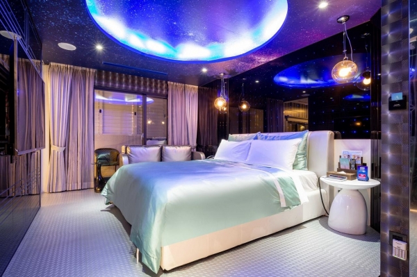 也有這種海洋主題的喔!選擇真的非常多樣,且不管是什麼房型都做得非常精細,大家看看這間房間就知道啦!連床頭都非常符合房間的海洋主題。
