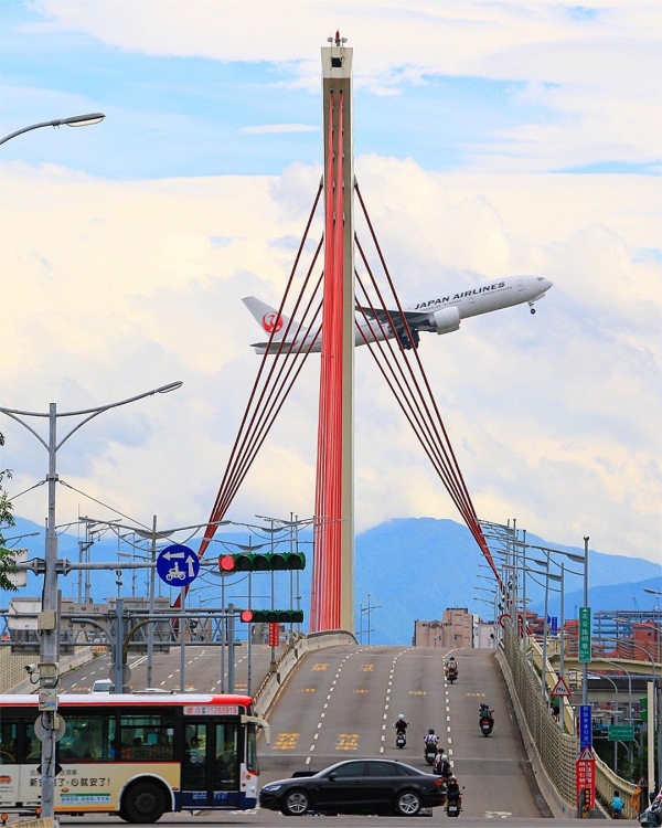 因鄰近機場,所以在這個橋上常常可以親眼目睹飛機起飛的美麗場景,那政府也為了美化這邊,在夜晚的時候橋下也會閃耀出紅、藍、黃美麗的燈光景色。