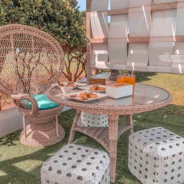 在前方的大草皮上也設置了很多可愛的桌椅,也可以跟牧草捲拍拍照,真的超像在國外的氣氛。