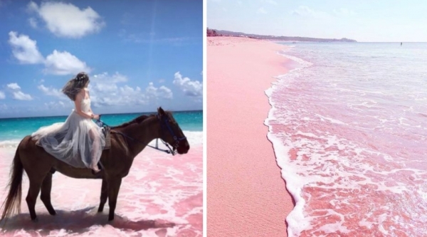 巴哈馬的哈勃島上有一處粉紅色的沙灘,這座沙灘被美國周刊評選為世界上「最性感的沙灘」,這處沙灘水質清澈、砂質細膩,除此之外最夢幻的是,你可以在這座沙灘上騎馬!