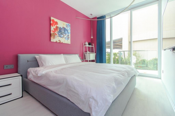 房內都是採用大片落地窗的設計,顯得明亮又大氣,打開窗簾就能遠眺四周鄉野般的景色啦!