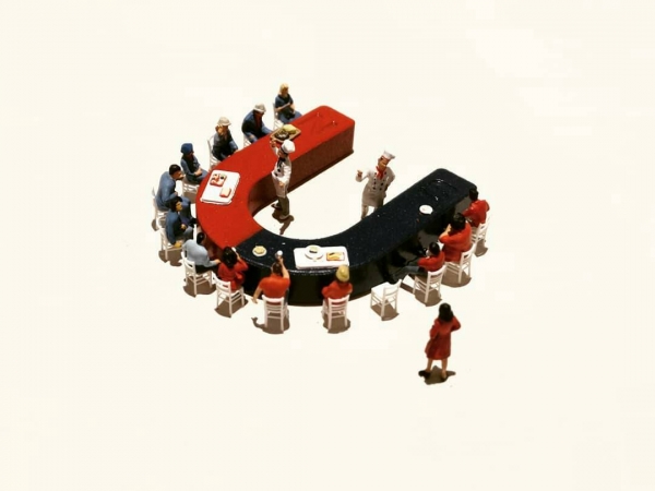 展區總共分成八大展區,主題橫跨自然、冒險、旅行、工作者、運動、家庭、交通和玩樂等,在炸雞樹下乘涼、在牛仔褲海浪中乘風破浪、進入充滿機會與命運的骰子道路,或是與愛人在鈕扣花中結為連理,跟著大師的腳步,看盡、走過人生的所有片段。