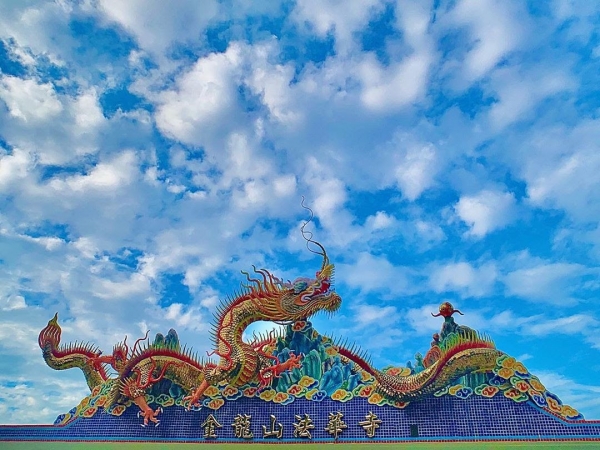 位於中寮鄉的金龍山出現新地標啦!共斥資1600萬打造出巨大氣派的金龍佛梯,兩側的金龍全長80公尺,拉直後能長達110公尺,成為亞洲最大最長的龍雕像,實在非常壯觀!
