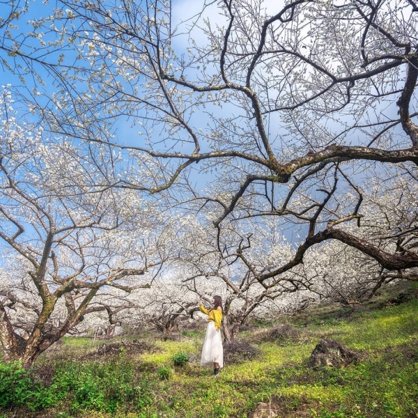 位於信義鄉的「外坪頂」是一個沒有商業氣息、最有農家風味的賞梅秘境,這裡海拔較高,梅花都盛開彷彿雪景般的白色花海,陽光灑在古厝前的梅樹時,有一種純樸的味道,那呈現出來的光影好迷人啊!