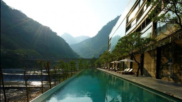 依地形高低差,結合山與溪的自然景觀,泰安觀止的戶外泳池及戶外湯區,形狀、大小、景觀都不盡相同,連溫度都各有不同,裸湯區隱密幽靜。