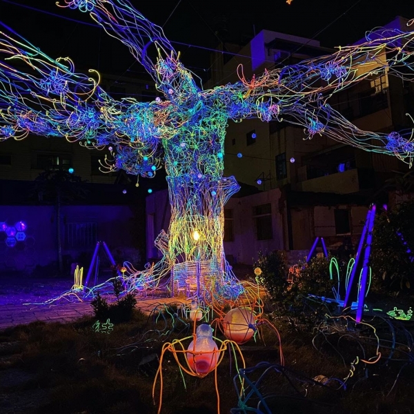 穿梭在這些老街巷弄裡,不只有可愛兔兔的身影,更有以家戶守護神為概念,創造在地的光陰使者等設計,而其他的裝置藝術也是超吸睛,讓整個鹽水夜色更美麗!
