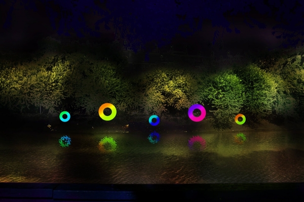 這次創造出可以看見的光學奇景,也探索鹽水在時間及空間軸線上的一體多面,讓旅客與作品及地方產生更直觀的連結,將光之美與鹽水原貌風情互襯,營造與地景深深結合的藝術氣氛。