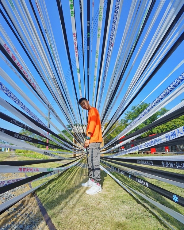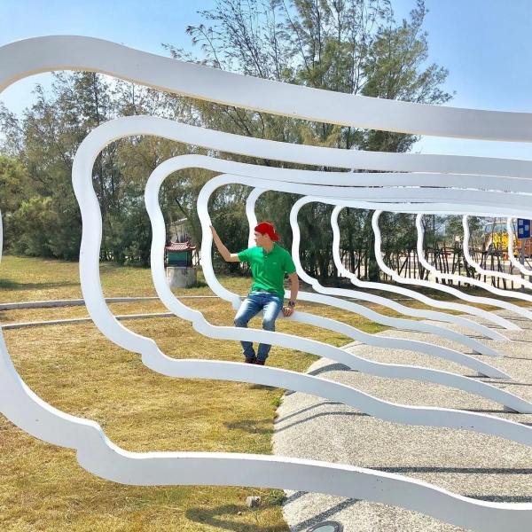 蕭壠文化園區真的是當地人的休閒天堂,糖廠改造的空間一直都是很有台南味道的遊憩景點,外圍像是公園一樣,原本的倉庫與廠房變身為各式藝術展場,特地保留的屋頂樑柱,由下而上仰望,幾何的線條在藍天中放射開來。