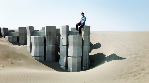 走在廠房倉庫之間,穿過長長的隧道,陽光穿過樑柱穿過樹梢,在灰色的牆面與地面上烙下印記,遊客穿梭其中,進出展場之間,這是屬於台南的文藝式悠閒。