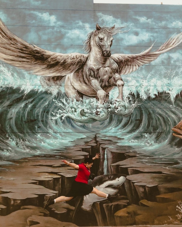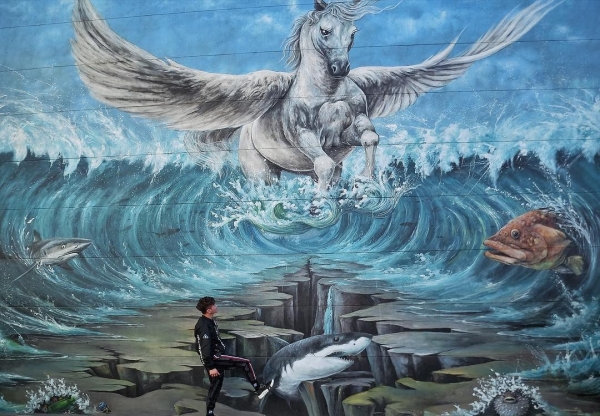 不管是大章魚或是烏魚子等,這些充滿象徵漁村的產物,全都成了3D彩繪圖的主角,讓遊客體驗到「轉角是藝術,巷弄有驚喜」的氛圍。