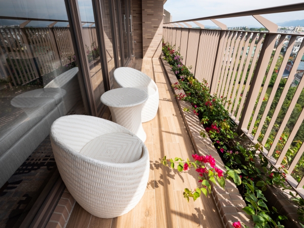 內裝風格高雅舒適的豪華客房,每間房間皆有景觀綠化陽台。