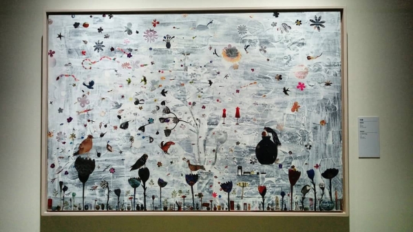 國美館則是多元文化交融,激盪下的表現,有來自日本重彩畫的典雅、中國水墨的深沉、也有西方文化的飛揚想像。