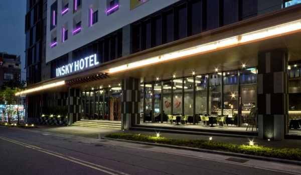 用極光的幸福想像去發想,將酒店外觀以不同顏色的光柱排列,在整點時候以不同的色彩閃爍,酒店大廳的天花板,用了大量的木作與燈光隨著不同的時間變化,空間中營造出極光流竄與幻化之美。