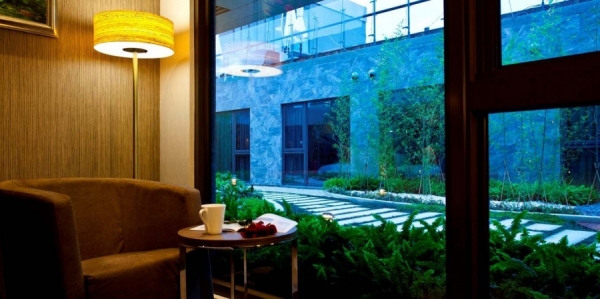 微微的玻璃窗美感,不只能俯瞰市景,還可以看到8樓的小花園植栽。