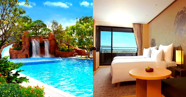 接下來要介紹設施囉,有室外游泳池和溫泉,超美的瀑布泳池還有滑水道再配上花園造景,浪漫無極限阿~