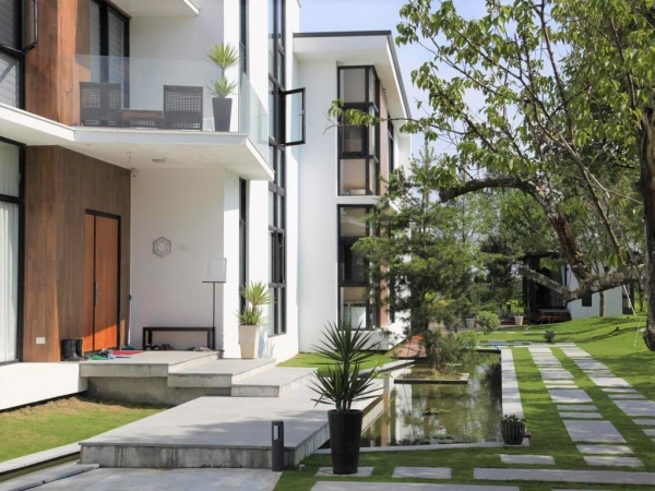 這間超前衛的現代設計風格很難讓人經過而不被它吸引~庭園跟池塘的結合讓它更加融入大自然~