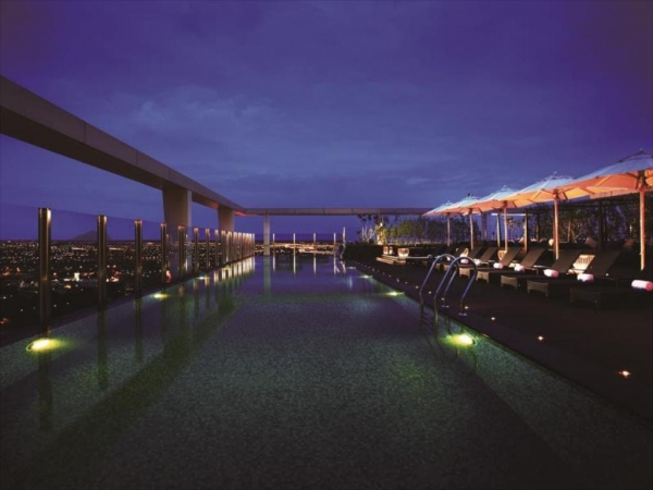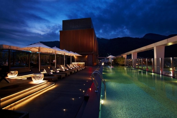 頂樓還有超大的無邊際游泳池及露天溫泉池,只要著泳衣就可以使用設施,不論是白天或者是晚上看出去的景觀都超美,非常適合邊泡邊放空自己。