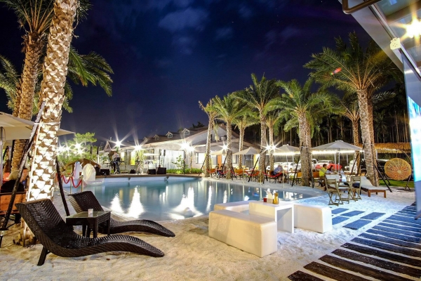 1500坪的空間內總共分為玻璃屋住宿區、沙灘、泳池、烤肉吧、舞台、健身房、蒸氣室、壁球室,另外還以歐式拱門、蒙古包超級漂亮的,美到讓人想結婚了啦!