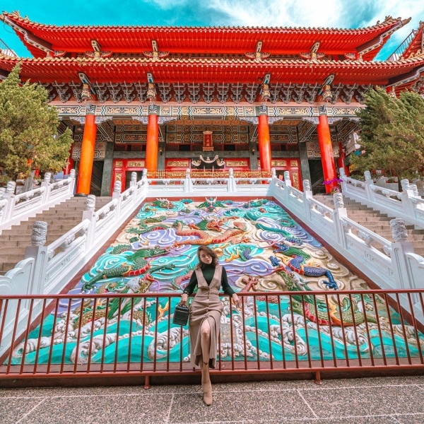 位於南投縣中寮鄉的金龍山法華寺,2016年耗資共1600萬,打造氣派的「金龍樓梯」,這條樓梯最大特色在於兩側的金龍,全長80公尺,拉直更達到110公尺長,為寺廟帶來一股莊嚴氣息,這條金龍樓梯也成亞洲最大、最長的龍雕像。