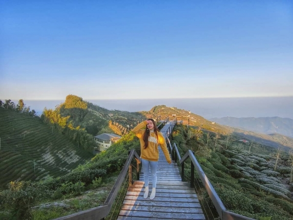 「大崙觀光茶園」海拔高達1250-1500公尺,沿著觀景步道登上觀霧亭,一整片的茶田、銀杏景緻呈現在眼前,還可遠眺中部五縣市的景致。此外,冬天的大崙山雲海更是一絕!飄渺如煙的雲霧環繞山頭,帶有一抹神秘。