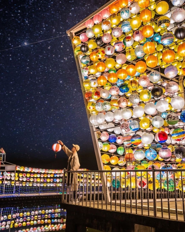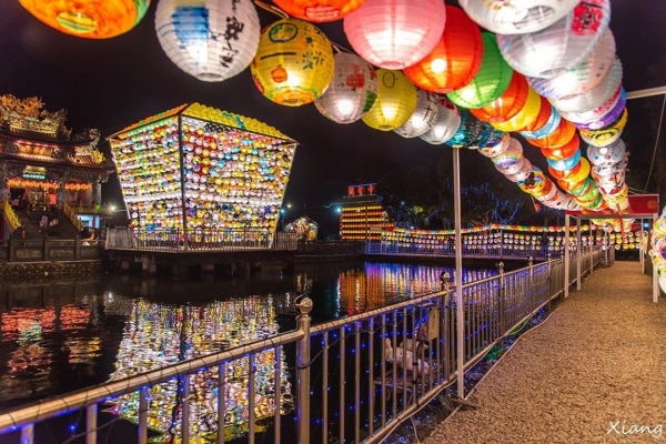 元宵即將來臨,「三峽廣行宮關聖帝君廟」上面圍繞著五公尺高的巨型天燈美景,每顆都是手繪燈籠編織而成,加上日本神社風格讓廣行宮成為網美打卡景點!
