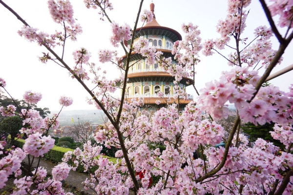 新北最狂!奔逼真「3D懸崖花叢」進入「燈籠山牆」,登五樓高「櫻花天壇」望湖面水彩之境!