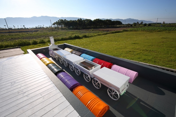 因主人對魔術方塊有著濃濃的情感,並以方塊為發想,打造出像魔術方塊的神奇建築,其碎石子的地方即是停車場,還有個超搶眼的紅色貨櫃屋、火車頭造型烤肉架及純白盪鞦韆,好多人都來這邊打卡拍照呢!