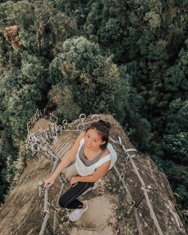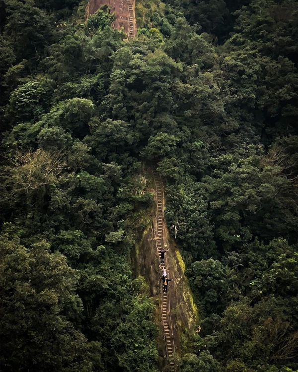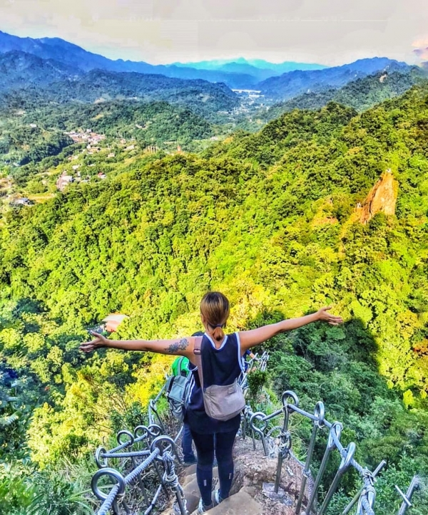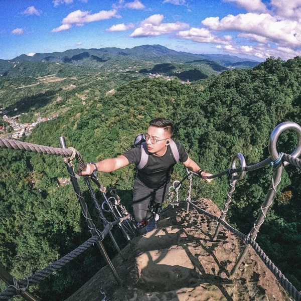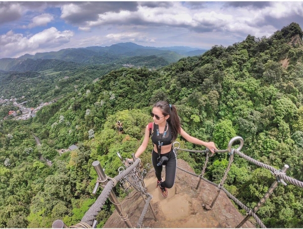 垂直90度的天梯峭壁難行,爬上去時有夠驚險,但攻頂後看到絕美山景就覺得一切都值得!