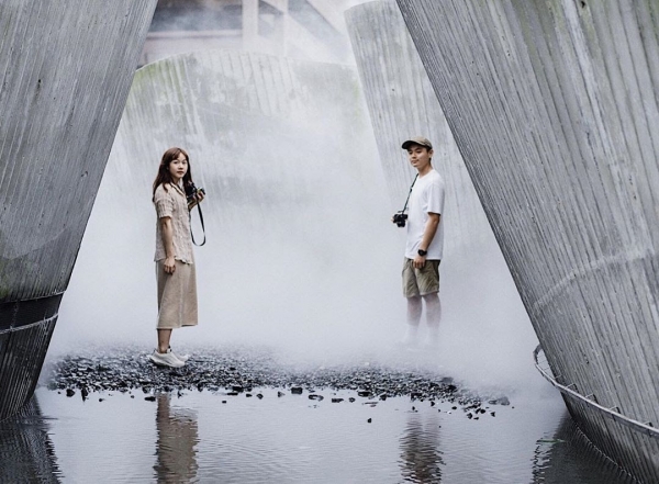 除了繽紛好拍的貨櫃屋以外,還有由台灣新銳設計師操刀的「高雄水水」水霧藝術地景,小編真的是第一次看到還有這種超特別得「迷霧景點」的啦!