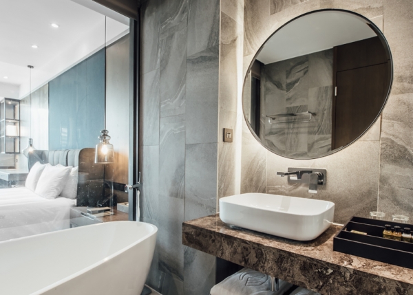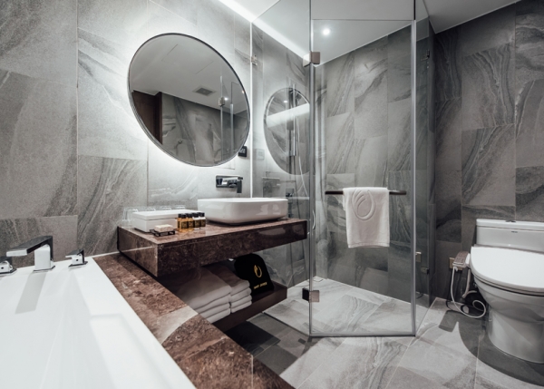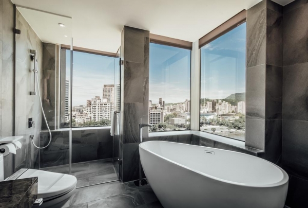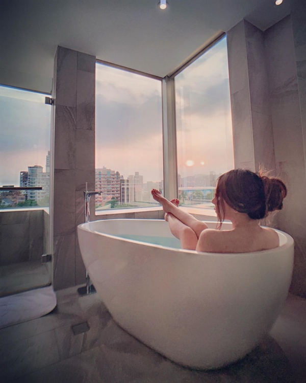 衛浴設備樣樣齊全,還有附超大獨立浴缸可以享用,邊泡澡邊看窗外市景,坐擁愛河無敵景觀,晚上看夜景簡直太浪漫啦!