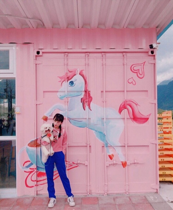光是咖啡廳外觀就已經好拍得不得了了,粉紅貨櫃屋配上可愛小馬繪圖,旁邊還有浪漫的粉紅搖椅,少女心要噴發啦!